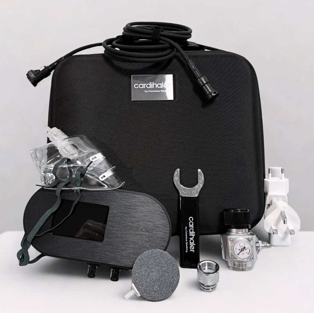 The Cardihaler™ is a precision-engineered CO₂ breathing device that increases carbon dioxide tolerance to improve breathing efficiency and oxygen delivery via the Bohr effect. By adding controlled resistance during exhalation, it supports smoother respiratory mechanics, calmer nervous system signaling, improved exercise tolerance, and greater resilience to physical and mental stress when practiced consistently.