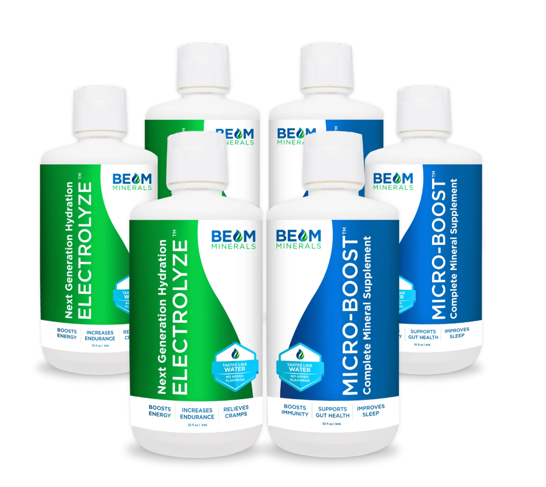 BEAM Minerals offers Electrolyze™ and Micro-BOOST™, delivering 70+ electrolytes, trace minerals, amino acids, and B-vitamins in a liquid that tastes like water. These support gentle detox, nutrient absorption, and vitality. Free from fillers or chemicals, they’re keto and fasting-friendly. Trusted by athletes and health pros alike.